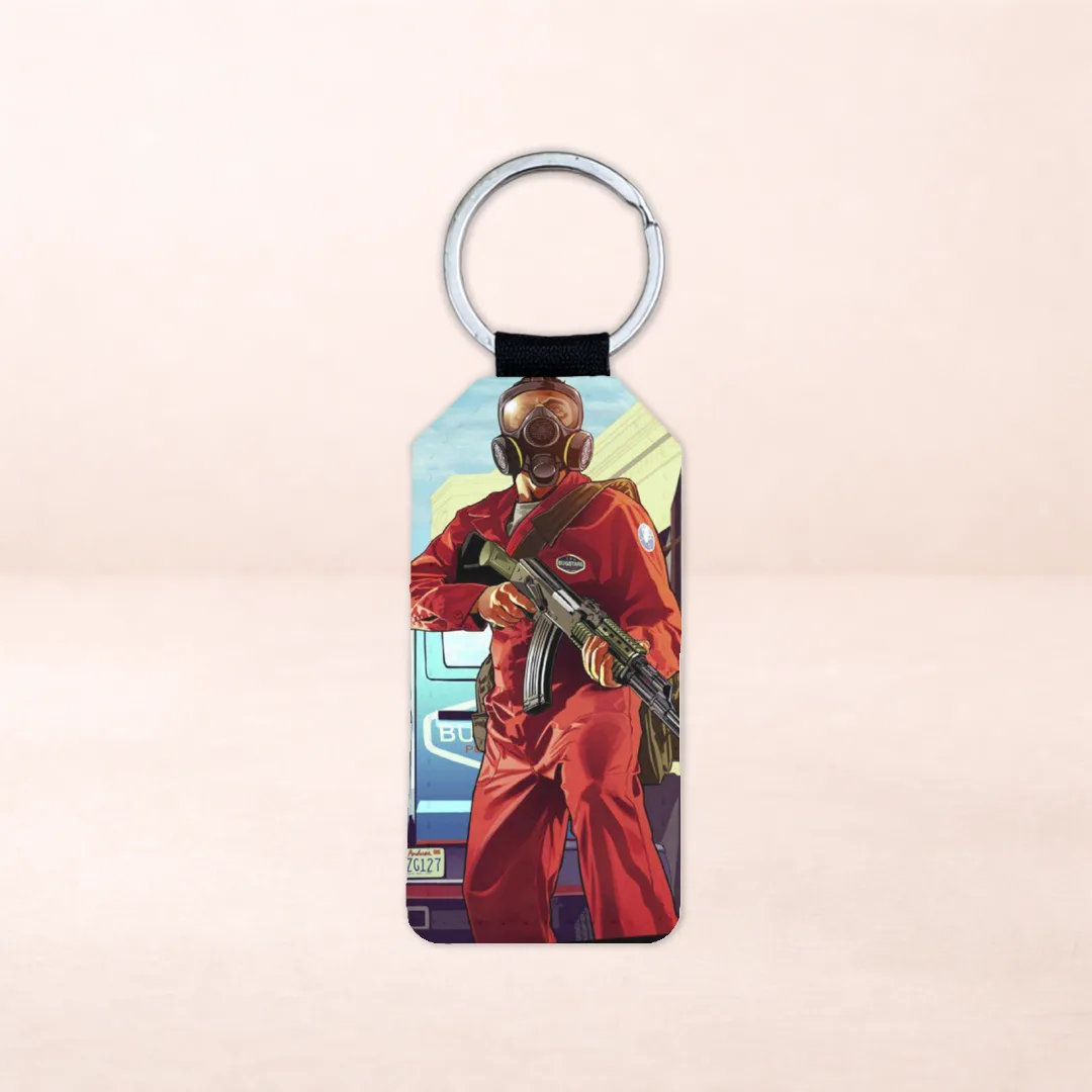 Брелок із принтом сцени пограбування у стилі GTA 5 — вибір для справжніх фанатів екшену. Динамічний дизайн із персонажем у масці створює ефект присутності у грі. Ідеально підходить як подарунок геймеру або як стильний аксесуар на кожен день.