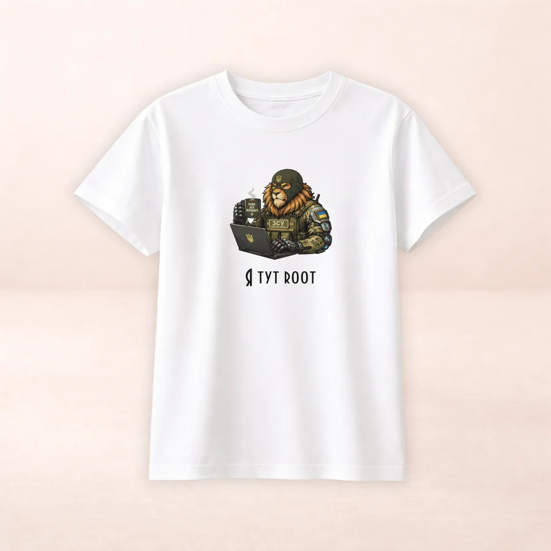 Футболка "Я тут ROOT" – ідеальний вибір для тих, хто поєднує патріотизм і любов до техніки та комп'ютерного світу. На футболці зображено льва в бойовій формі, який з серйозним виглядом працює за комп'ютером, із написом "Я тут ROOT", що є алюзією на контроль і впевненість. Цей принт стане відмінним доповненням для любителів комп'ютерної техніки, військових тем та всіх, хто вважає себе частиною цифрової революції. Футболка виготовлена з бавовняного матеріалу, що дарує комфорт на протязі всього дня.
