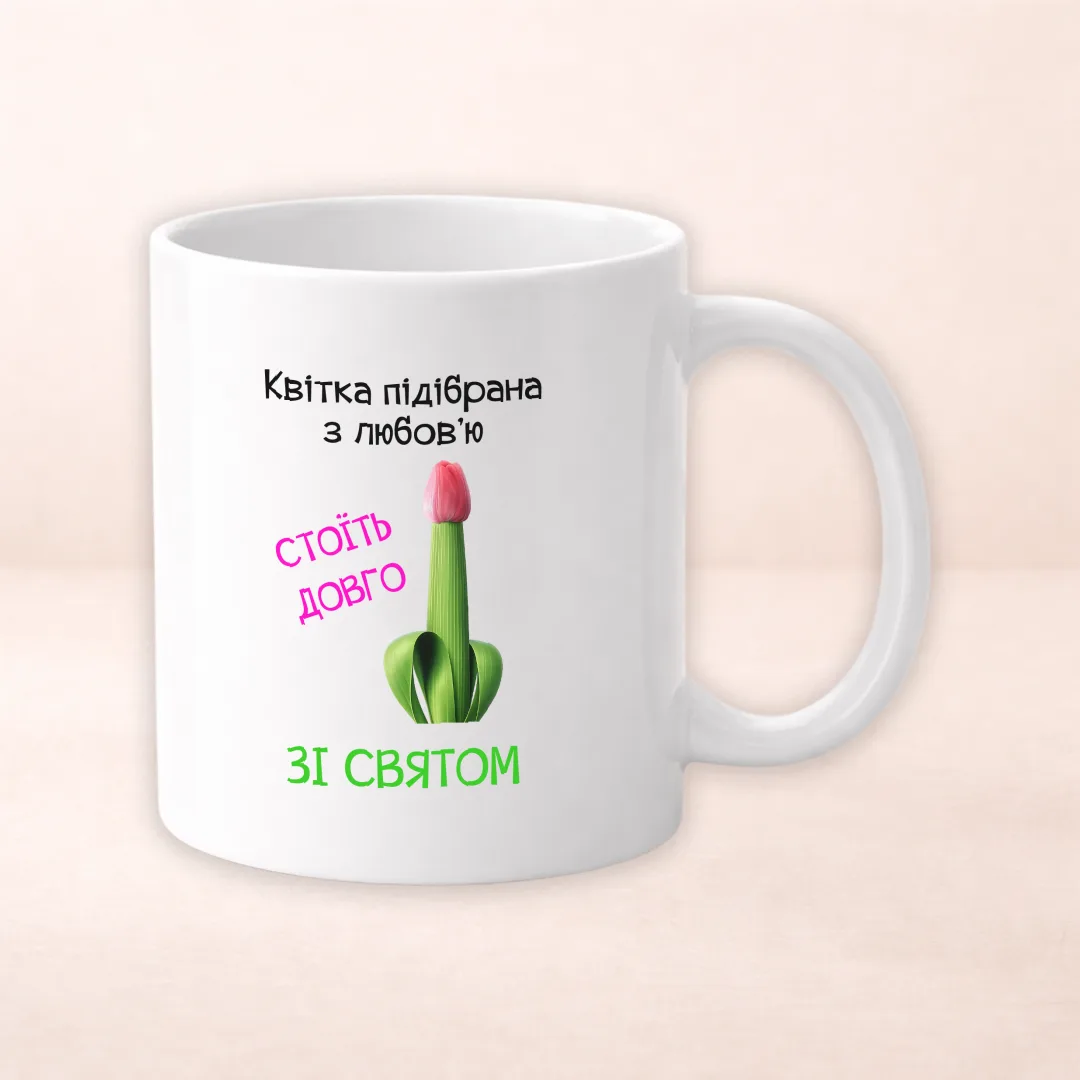 Чашка з принтом «Квітка підібрана з любов'ю стоїть довго» — оригінальний варіант для щоденного користування та вдалий подарунок з настроєм. Такий дизайн особливо сподобається подрузі, сестрі, колезі або жінці, якій хочеться подарувати хороший настрій. Такий принт додає подарунку святкового настрою, легкості та приємних емоцій. Такий товар легко стає помітною деталлю щоденного настрою та вдало виділяється серед стандартних варіантів.