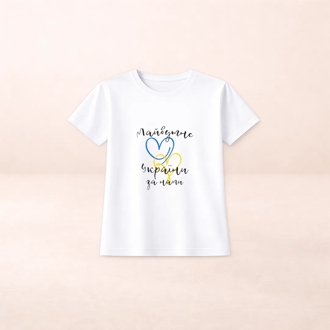 Футболка з принтом «Майбутнє України за нами» — яскрава річ для повсякденного гардероба, яка допомагає підкреслити характер і настрій. Такий дизайн особливо сподобається тим, хто цінує український стиль і сильний меседж. Патріотичний меседж робить річ актуальною, змістовною та доречною для подарунка. Принт добре читається в повсякденному образі й допомагає зробити навіть базовий одяг більш виразним.