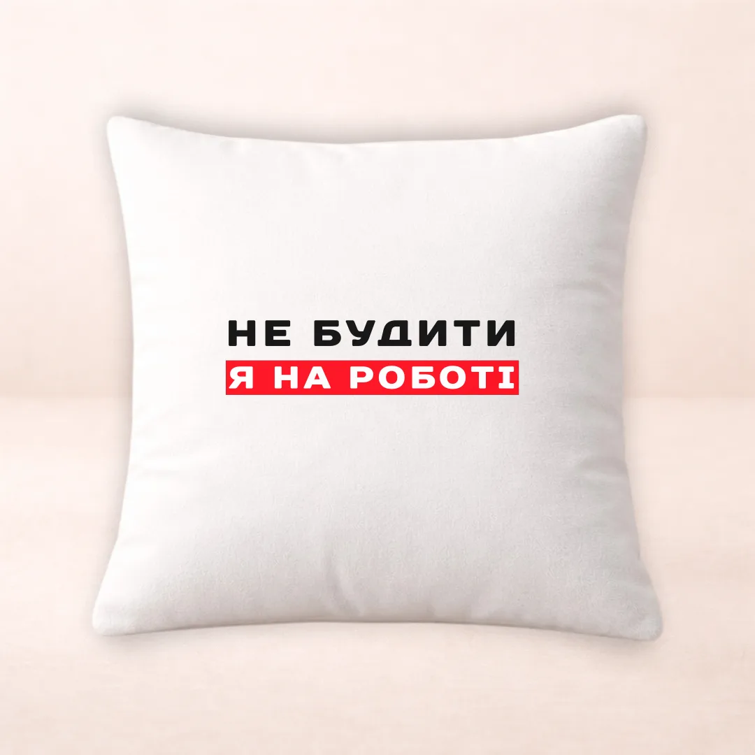 Декоративна подушка з принтом «Не будити я на роботі» — затишна деталь інтер’єру, яка додає простору тепла, емоції та індивідуальності. Такий дизайн особливо сподобається людям із почуттям гумору. Кумедний або сміливий напис робить річ помітною та легко впізнаваною. Такий принт гарно виглядає в інтер’єрі та додає домашньому простору настрою й індивідуальності.