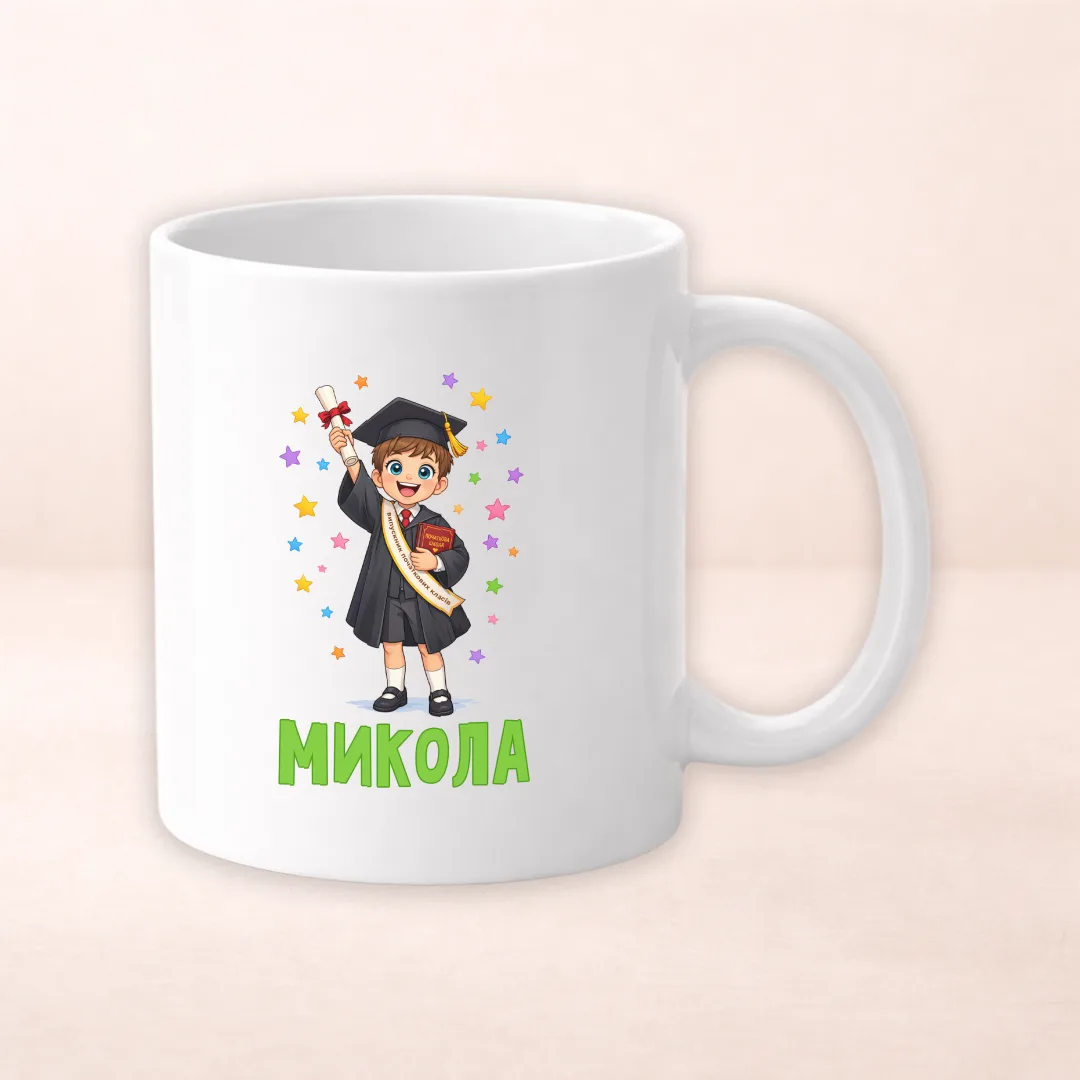 Чашка з принтом «Випускник початкових класів "Микола"» — оригінальний варіант для щоденного користування та вдалий подарунок з настроєм. Такий дизайн особливо сподобається дитині, школяреві чи школярці. Тематичний або іменний принт додає святкового настрою й перетворює річ на приємну пам’ятку. Іменний або тематичний дизайн допомагає зберегти спогад про важливий шкільний етап і святковий день.